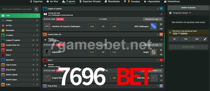 O 7696 Bet oferece uma grande seleção de opções de apostas em e-sports com probabilidades competitivas